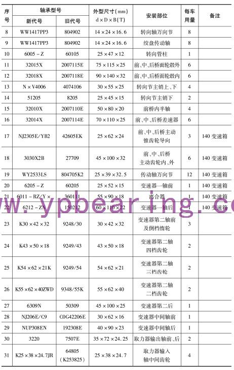 | 12 | 32018X | 2007118E | 90×140×32 | 前、中(zhōng)、後橋面輪毂(gū)内 | 6 | |