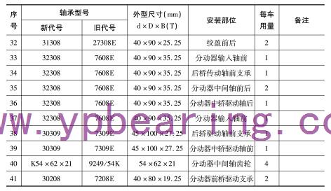| 41 | 3028 | 7208E | 40×80×19.25 | 分動器前橋(qiao)驅動支承 | 2 | |