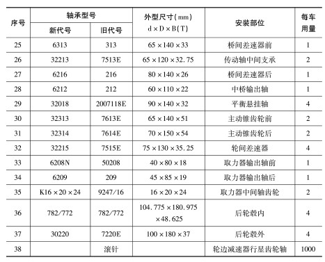 | 序(xù)号 | 軸(zhou)承型号 | 外形尺(chi)寸(mm) | 安(an)裝部位 | 每車用(yòng)量 | |