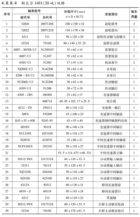 | 32 | 30222 | 7222E | 110×200×41 | 中、後橋(qiáo)輪毂内 | 4 |