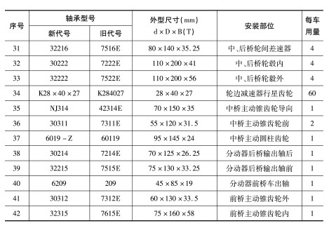 | 41 | 30312 | 7312E | 60×130×33.5 | 前橋主動(dòng)錐齒輪外 | 1 |